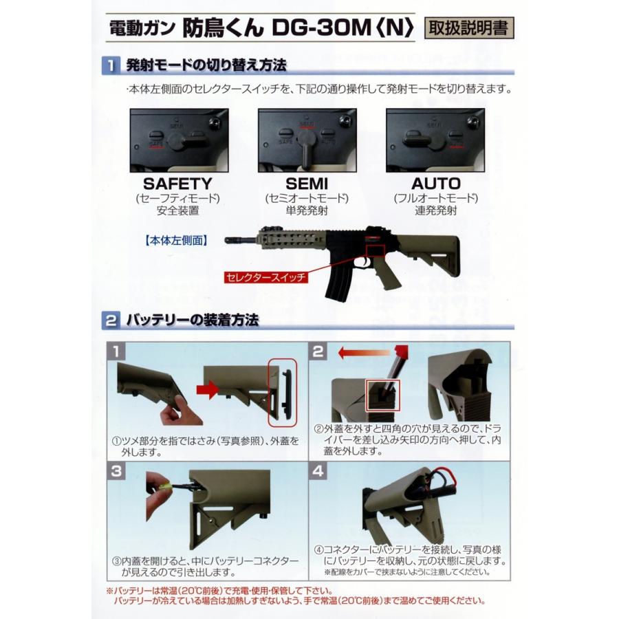 ネクストアグリ 電動エアガン 防鳥くん 特長・シカ・イノシシなどの害獣・害鳥の撃退に。・3パターンの発射モードの切り替えが行えます。・弾道の軌道変更が可能なポップ